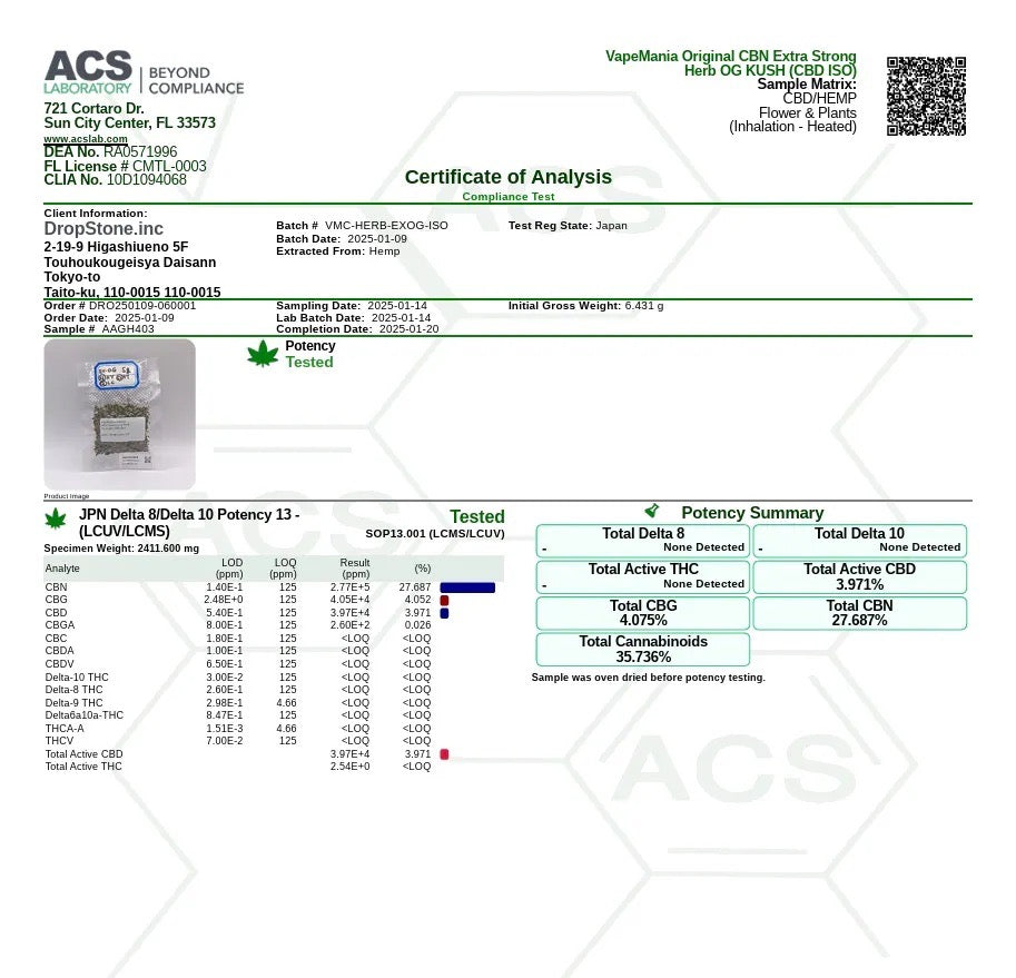 【VapeMania】CBN Extra Strong ハーブ 3.5g(OG KUSH/SHIBUYA Skunk)